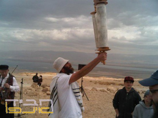 בהמשך התקיים טקס של עליה לתורה לבנים שעברו את גיל המצוות עם ספר תורה שהוא עצמו נכתב ע"י צעירי חב"ד על המצדה מעל חפירות וממצאי שרידי ספרי התורה מתקופת בית שני. ספר זה שהורתו ולידתו על ההר הוכנס ברוב פאר והדר לבית הכנסת העתיק שבמצדה כשמיד אחריו התיישב סופר הסת"ם החב"די להחל בכתיבת הספר השני.