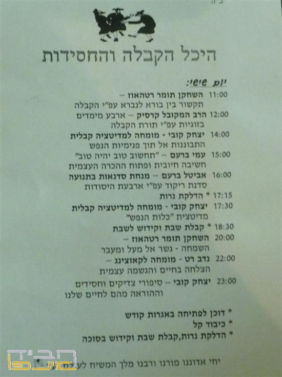 הפעם הצוות כלל שורת מרצים בחסידות שעניינו והלהיבו את מאות מבאי הפסטיבל בתוכניה עשירה בקבלה ובחסידות.כמו כן,הוצב דוכן לכתיבה באגרות קודש ולהנחת תפילין ולקראת שקיעה עשרות נשים באו להדליק נרות שבת קודש.