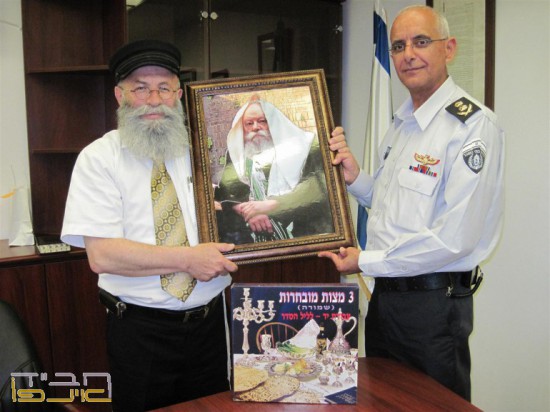 הרב גלויברמן העניק לו הגדה לפסח, מצות שמורות, ותמונה של הרבי לברכה והצלחה.