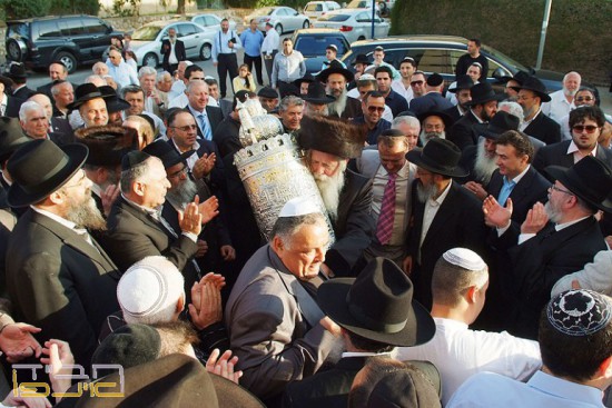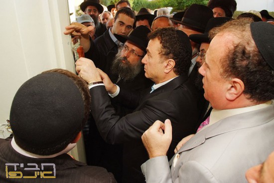 להסרת הלוט הוזמנו ששת נכדיו של המנוח. לקול שירתו של הזמר החסידי מנדי ג'רופי.בהמשך כובד מר מיכאל מירילשוילי בגזירת הסרט ולקבוע את המזוזה בפתח הראשי של הבנין משם עלו יחד עם ספר תורה חדש שסיימו לכבוד יום האזכרה לתפילת מנחה באולם המפואר של בית הכנסת.