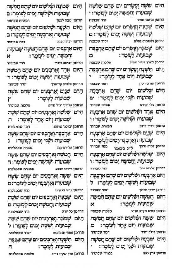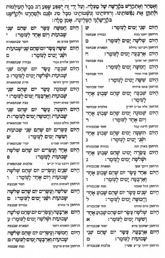 ממוצאי יום א’ של פסח, ועד ערב חג השבועות, סופרים בכל ערב לאחר תפלת ערבית, את הימים והשבועות שעברו: "היום יום אחד לעומר", "היום שני ימים לעומר".. "היום עשרה ימים שהם שבוע אחד ושלשה ימים לעומר".. "היום תשעה וארבעים יום שהם שבעה שבועות לעומר". השם "ספירת העומר" נובע מכך, שהתחלת הספירה היא ביום שבו הקריבו – בזמן שבית המקדש היה קיים – את קרבן "עומר התנופה", שהוא קרבן מנחה משעורים מהתבואה החדשה שנקצרה בליל ששה עשר בניסן. ומאחר שאין לנו עתה בית מקדש והעומר אינו קרב, לכן יש אומרים שהספירה בזמן הזה היא רק מדרבנן "זכר למקדש".