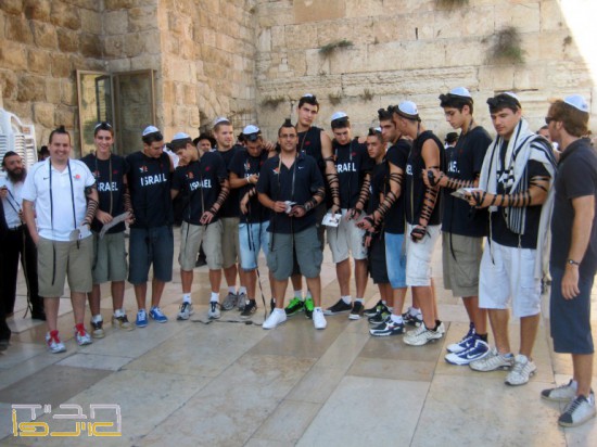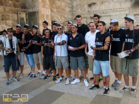 לקראת נסיעה לחו"ל עם תחילת סבב משחקים חדש של נבחרת ישראל הצעירה בכדורסל קדטים של נערים עד גיל 16, הגיעו חברי הקבוצה והמאמנים לתפילה בכותל המערבי ● בהזדמנות מיוחדת זו, התקבלו על-ידי צוות דוכן התפילין של צעירי חב"ד, הפשילו שרוולים וקיימו בהידור את מצוות הנחת תפילין.