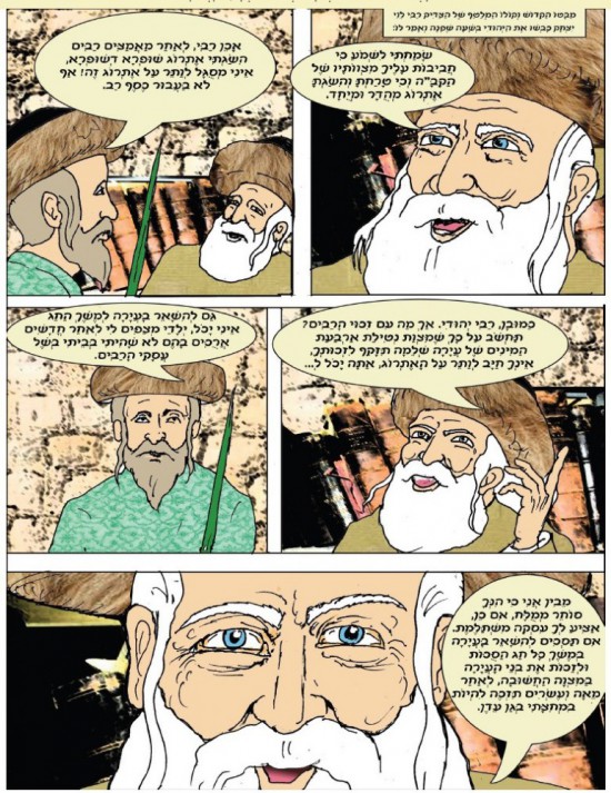 שְׁנֵי הַחֲסִידִים מְנַסִּים לְשַׁכְנֵעַ אֶת הַסּוֹחֵר הַיְּהוּדִי לִמְכֹּר לָהֶם אֶת אֶתְרוֹגוֹ, מִפְּנֵי שֶׁבְּבֶרְדִּיצֶ'ב אֵין אֲפִלּוּ אֶתְרוֹג אֶחָד, אַךְ לַשָּׁוְא. הֵם מַצִּיעִים לוֹ לְהִכָּנֵס לְרַבִּי לֵוִי יִצְחָק מִבֶּרְדִּיצֶ'ב.