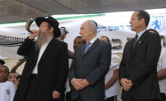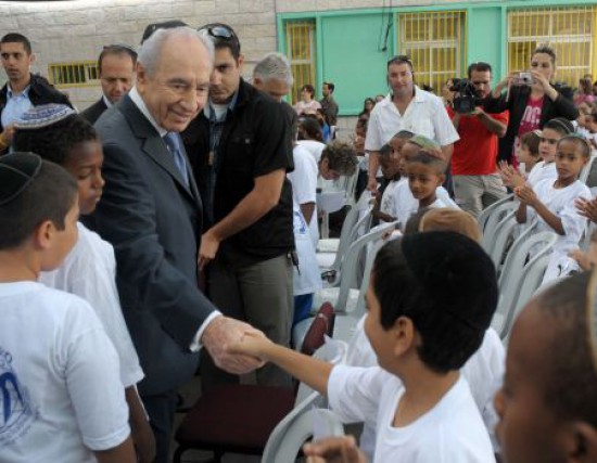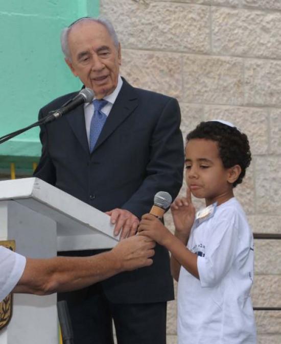 מר שמעון פרס וראש עיריית ירושלים ניר ברקת פתחו היום את שנת הלימודים ה'תשע"ב בבית ספר חב"ד עיר גנים בירושלים בניהולו של הרב שמעון ידגר.
