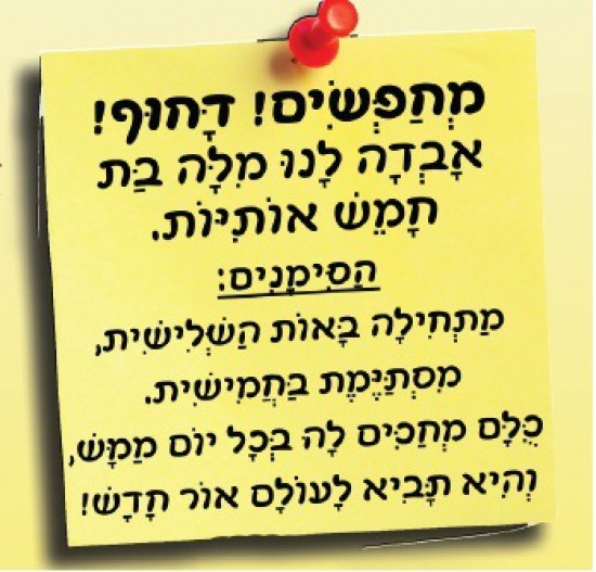 קִרְאוּ אֶת הַמּוֹדָעָה הַבָּאָה וְגַלּוּ עַל פִּי הַסִּימָנִים מִי הִיא הַמְּצִיאָה הַמְבֻקֶּשֶׁת.