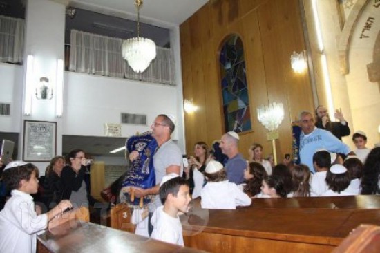 מכאן מוזמנים הילדים לריקוד משותף יחד עם ספרי התורה הנישאים בידי מס' אבות, סביב בימת בית הכנסת והשמחה גואה עם מחיאות הכפיים וקולות הזמרה עד לשמיים.