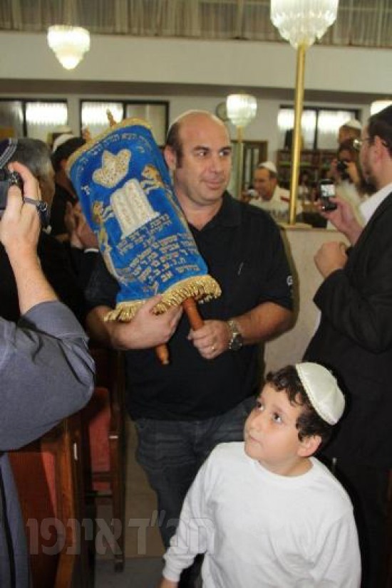הם לבושים חגיגי, מתוחים נרגשים אך העיקר שמחים מאוד ביום שמחתם – חגיגת קבלת החומש בבית הכנסת הגדול ברמת השרון.