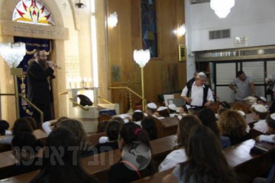 כמידי שנה מקבל אותם הרב בוטמן שליח הרבי ורב חב"ד בעיר בדברי תורה וברכה משולבים בהסבר על בית הכנסת והתפילות הנערכות בו, על ההבדל שבין הסידור לחומש, ובין החזן לקהל. על הדומה והשונה שבין בתי הכנסת אך בעיקר על הדומה כמו: 'כותל המזרח' וארון הקודש שבו, על העובדה שבכל בתי הכנסת בארץ ואפי' בעולם מכוונות התפילות אל (ועל) ירושלים.