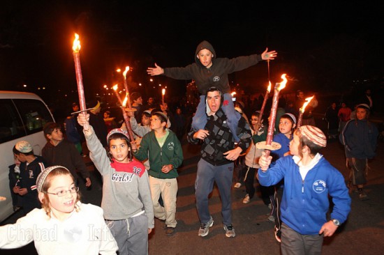 מאות מתושבי מצפה רמון, תלמידי הישיבה התיכונים במקום וחיילים מבה"ד 1 שמחו בקבלת התורה במעמד חנוכת הבית למרכז חב"ד שנבנה בדוגמת בית חיינו - 770 במצפה רמון שבנגב