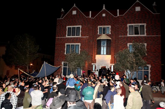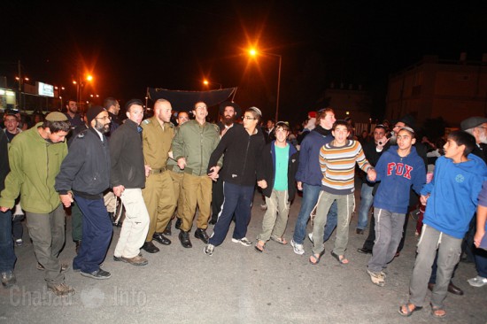 מאות מתושבי מצפה רמון, תלמידי הישיבה התיכונים במקום וחיילים מבה"ד 1 שמחו בקבלת התורה במעמד חנוכת הבית למרכז חב"ד שנבנה בדוגמת בית חיינו - 770 במצפה רמון שבנגב.