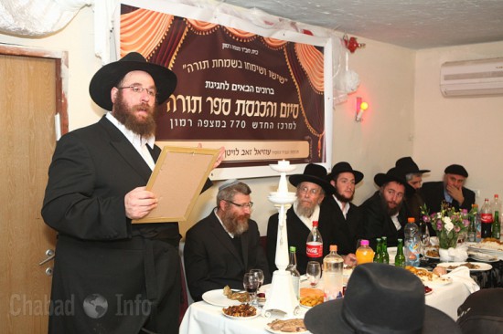 הספר הוכנס למרכז 770 החדש במצפה רמון בראשות השליח הרב צבי סלונים בשמחה רב בלווי טנק המבצעים. לאחר התהלוכה נערכו הקפות וסעודת מצווה חגיגית.