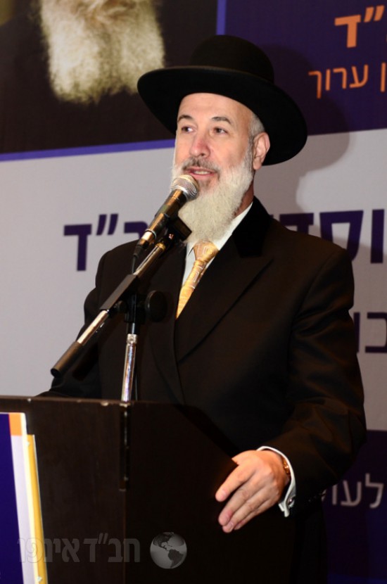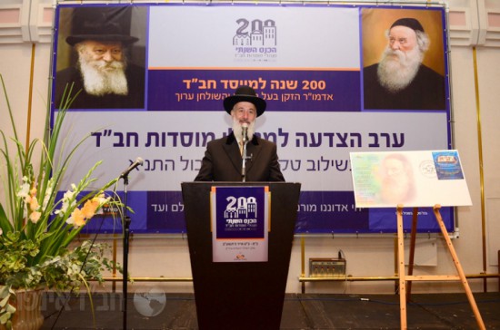 לאחר מכן הוזמן לשאת דברים הרב גדליה אקסלרוד, רב קהילת חב"ד ואב"ד חיפה, שדיבר על עמידתו של אדמו"ר הזקן ללא חת והמסר שהוא מלמד את ההולכים בדרכיו, כשהוא מקשר את הדברים לסוגיות העומדות על הפרק ובנוסף הקדיש דברים חמים למנהלי המוסדות.