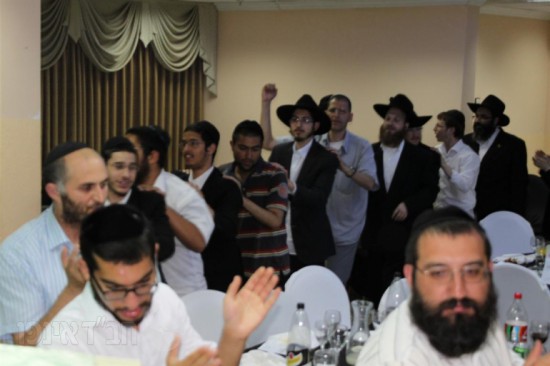 ושוב לקראת השעה 12:00 בלילה עלו המקורבים טפח מעל הקרקע בניגוני ושמחה וריקודים מפי אמן הקלידים שמחה פרידמן.