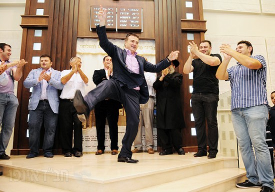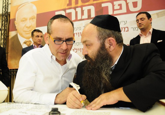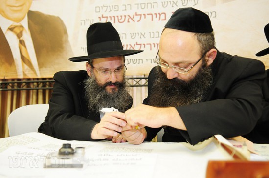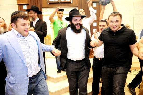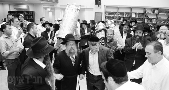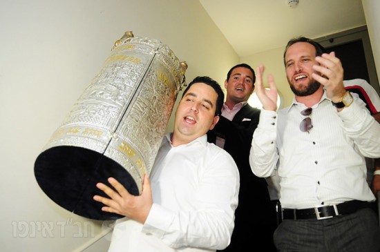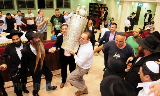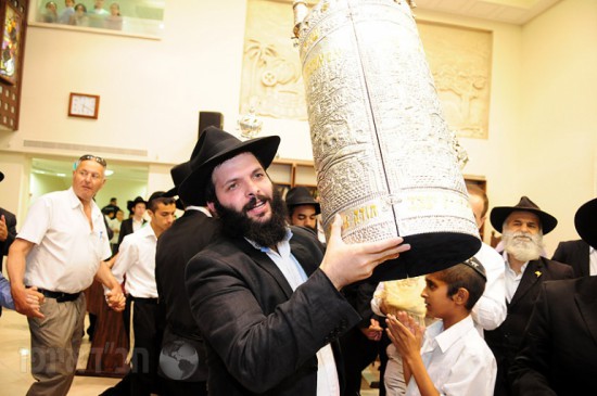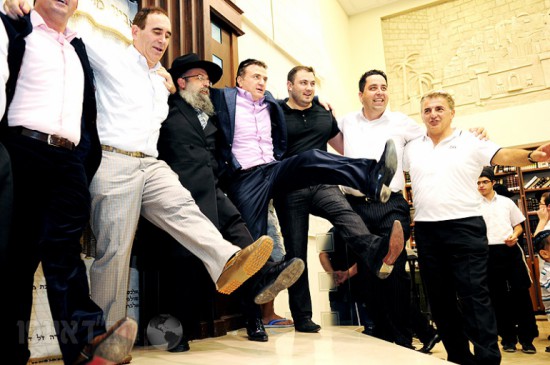 לאחר סיום כתיבת האותיות באולם האירועים של הבניין ירדו האורחים בשירה וריקודים יחד עם עמירן דביר וישי לפידות להקפות בבית הכנסת המרכזי לשמחה פורצת גבולות.