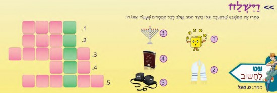 פִּתְרוּ אֶת הַתַּשְׁבֵּץ שֶׁלִּפְנֵיכֶם וְגַלּוּ כֵּיצַד הֵגִיב יַעֲקֹב לְכָל הַחֲסָדִים שֶׁעָשָׂה אִתּוֹ ה':