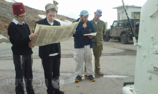 קבוצת בחורים צעירים סחבו את הרב אורי מרטון בעל הקריאה מצפת לקריאת המגילה על גבול סוריה במרומי הר החרמון. ממוצב למוצב קראו את המגילה לחיילים הנמצאים בימים אלו בתפקיד רגיש לאור המתרחש בגבול הסורי. החיילים הופתעו מהצלחת החב"דניקים להיכנס למתקנים הצבאיים בהר וקיבלו את משלוחי המנות בהתרגשות