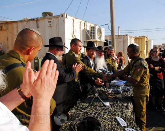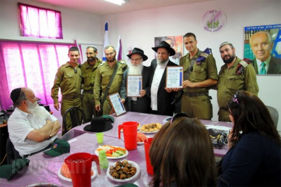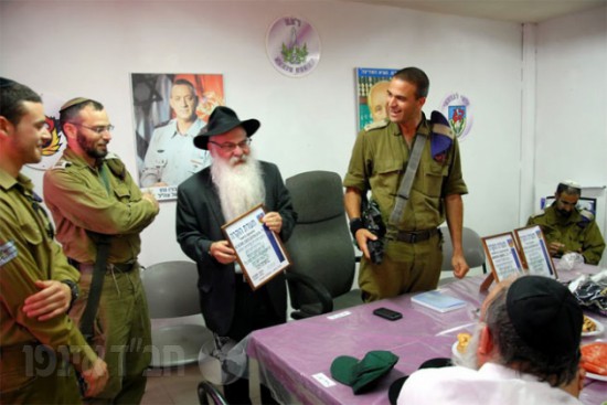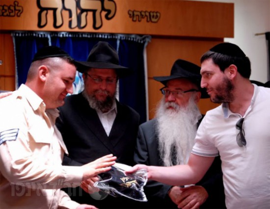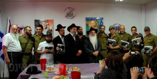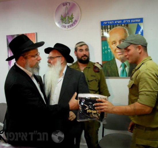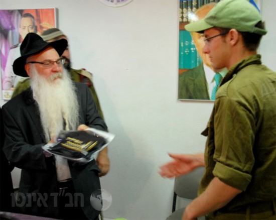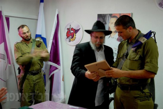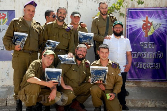 את פני המשלחת קיבל בפתח הבסיס הרב שאול אופן יחד עם התורמים מצרפת בראשות הרב אליהו זיקרי מנהל הפרוייקט בצרפת מטעם בית חב"ד בליאון בראשות השליח הרב שמואל גורביץ והרב יוסי נחשון מחב"ד חברון – טנק חב"ד חולקו תפילין מהודרות ללוחמים.