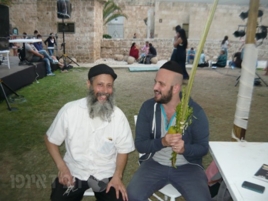 הרב אליהו גבאי והרב סימן טוב יצחק הפעילו דוכן לאגרות קודש והתוועדו רבות עם מבקרי הסוכה.