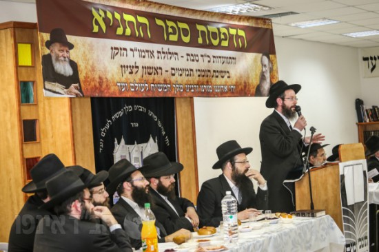 הרב מרדכי צבי דוברבסקי רב קהילת חב"ד ראשון לציון, נשא דברים על חשיבות התקנה של הדפסת התניא בכל מקום בעולם. הרב זלמן נוטיק משפיע בישיבה לימד את הקהל פרק לב בתניא מתוך התדפיס של הישיבה.