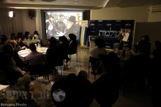 האורות כבים ועל המרקע מוקרנים מחזות-קודש בהפקת מכון 'לראות את מלכנו', בהם נראים אישים מעולם המדיה והתקשורת, עיתונאים ומו"לים במפגשים אצל הרבי, השיחה שנחצבה עמוק בליבו של כל חסיד, בה הרבי זועק: "נדמיין לעצמנו יהודי שרואה את בית המקדש עולה בלהבות - הרי בוודאי היה הופך עולמות, אומרת תורת אמת תורת חיים הוראה בחיים, הפוך את העולם היום!", בתום הוידאו הובאו קטעי-עידוד נמרצים של הרבי לשירת "שיבנה בית המקדש" \ "אנו רוצים משיח עכשיו" \ "יחי אדוננו"...