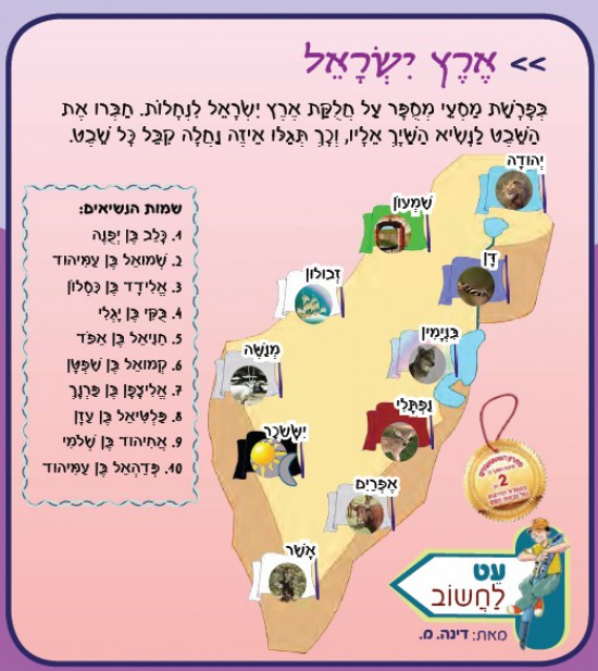 בְּפָרָשַׁת מַסְעֵי מְסֻפָּר עַל חֲלֻקַּת אֶרֶץ יִשְׂרָאֵל לִנְחָלוֹת. חַבְּרוּ אֶת הַשֵּׁבֶט לַנָּשִׂיא הַשַּׁיָּךְ אֵלָיו, וְכָךְ תְּגַלּוּ אֵיזֶה נַחֲלָה קִבֵּל כָּל שֵׁבֶט.