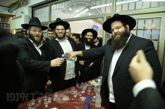 המנחה הרב נחמן לרנר ואיש חינוך, שפותח את ההתוועדות, באמירת "לחיים" רבתית על ידי כל קהל המשתתפים עם ברכה נאמנה לכ"ק אד"ש שירווה נחת אמיתי מכל החסידים, התמימים, השלוחים וכלל ישראל והעיקר שיתגלה נאו. עשרות בקבוקי ה'משקה' המפוזרים על השולחנות עמוסי התקרובת כ'פארבייסען' נפתחים אחד אחד. המנחה