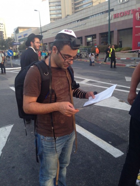 הבוקר (שישי) בשעה שש וחצי, התקיים פיצוץ גשר מעריב בתל אביב, בהשתתפות קהל סקרנים גדול וכן חברי הממשלה. תלמידי התמימים מהישיבה בכפר חב"ד ערכו במקום מבצע תפילין רחב היקף. בתמונה נראה השר אופיר אקוניס מניח תפילין במתחם הסגור