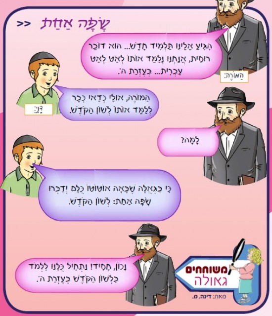 בַּגְּאֻלָּה שֶׁבָּאָה אוֹטוֹטוֹ כֻּלָּם יְדַבְּרוּ שָׂפָה אַחַת: לְשׁוֹן הַקֹּדֶשׁ.
