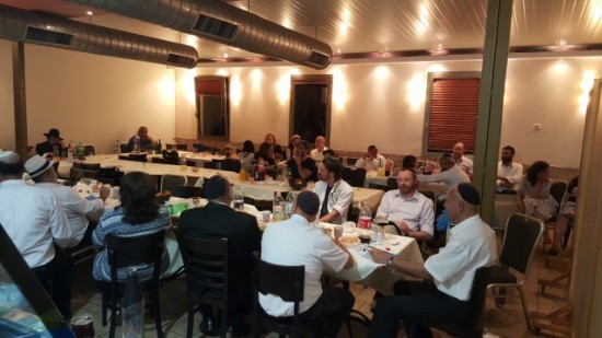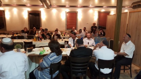 בליל השבת האורחים אכלו בבתי המשפחות המארחות בכפר חב"ד ורוב תודות להם על כך, לאחר הסעודה התקיימה התוועדות ענקית בבית משפחת ר' אלכס פרוצ'נסקי בהשתתפות האורחים והרב עמרם מויאל שהשפיע מכל טוב על המשתתפים.