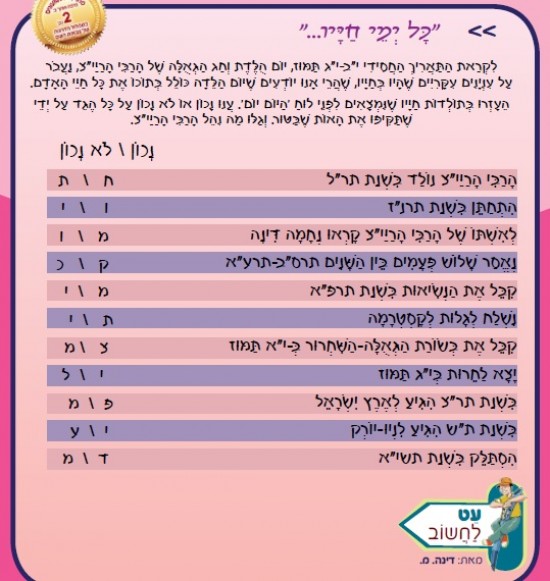 לִקְרַאת הַתַּאֲרִיךְ הַחֲסִידִי י"ב-י"ג תַּמּוּז, יוֹם הֻלֶּדֶת וְחַג הַגְּאֻלָּה שֶׁל הָרַבִּי הָרַיַּי"צ, נַעֲבֹר עַל עִנְיָנִים עִקָּרִיִּים שֶׁהָיוּ בְּחַיָּיו, שֶׁהֲרֵי אָנוּ יוֹדְעִים שֶׁיּוֹם הַלֵּדָה כּוֹלֵל בְּתוֹכוֹ אֶת כָּל חַיֵּי הָאָדָם.