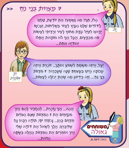 אֲהָהּ... אֲנִי נִזְכֶּרֶת... לְהַסְבִּיר לָהֶם אֵיךְ מְקַיְּמִים אֶת 7 הַמִּצְווֹת שֶׁגַּם הַגּוֹיִים מְצֻוִּים בָּהֶן... נָכוֹן!!!