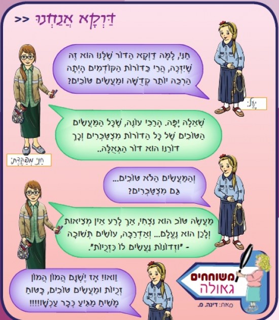 כָּל הַמַּעֲשִׂים הַטּוֹבִים שֶׁל כָּל הַדּוֹרוֹת מִצְטַבְּרִים וְכָךְ דּוֹרֵנוּ הוּא דּוֹר הַגְּאֻלָּה..