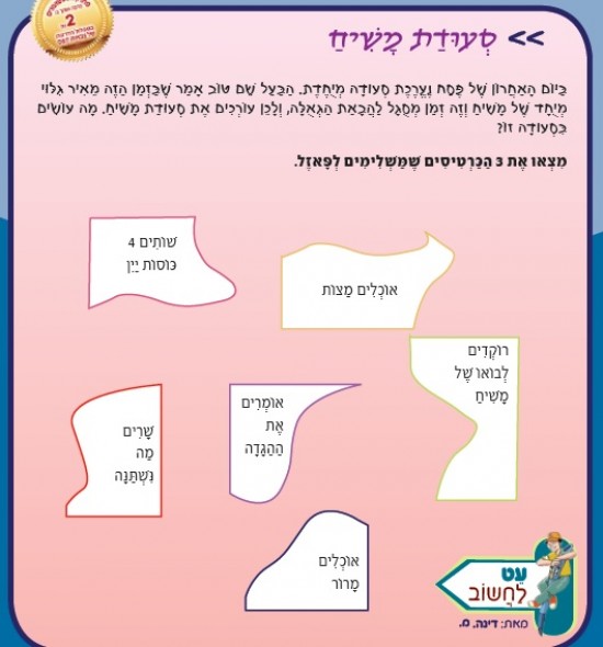 בַּיּוֹם הָאַחֲרוֹן שֶׁל פֶּסַח נֶעֱרֶכֶת סְעוּדָה מְיֻחֶדֶת. הַבַּעַל שֵׁם טוֹב אָמַר שֶׁבַּזְּמַן הַזֶּה מֵאִיר גִּלּוּי מְיֻחָד שֶׁל מָשִׁיחַ וְזֶה זְמַן מְסֻגָּל לַהֲבָאַת הַגְּאֻלָּה, וְלָכֵן עוֹרְכִים אֶת סְעוּדַת מָשִׁיחַ. מָה עוֹשִׂים בִּסְעוּדָה זוֹ?