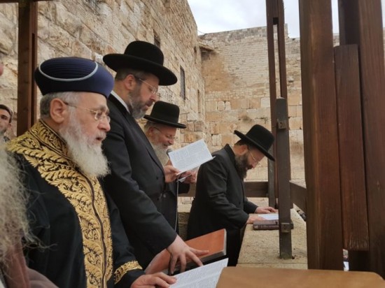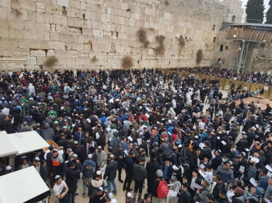 אלפים השתתפו בתפילת ההמונים הנערכה למען הגשמים בכותל המערבי שהתקיימה היום צום עשרה בטבת לפני תפילת המנחה