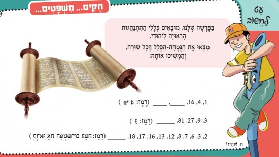 בַּפָּרָשָׁה שֶׁלָּנוּ, מוּבָאִים כְּלָלֵי הַהִתְנַהֲגוּת הָרְאוּיָה לִיהוּדִי. מִצְאוּ אֶת הַנֻּסְחָה-הַכְּלָל בְּכָל שׁוּרָה, וְהַמְשִׁיכוּ אוֹתָהּ: