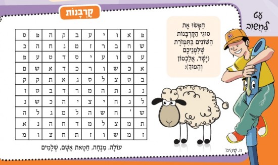 חַפְּשׂוּ אֶת סוּגֵי הַקָּרְבָּנוֹת הַשּׁוֹנִים בַּתִּפְזֹרֶת שֶׁלִּפְנֵיכֶם (יָשָׁר, אֲלַכְסוֹן וְהָפוּךְ): עוֹלָה, מִנְחָה, חַטָּאת אָשָׁם, שְׁלָמִים