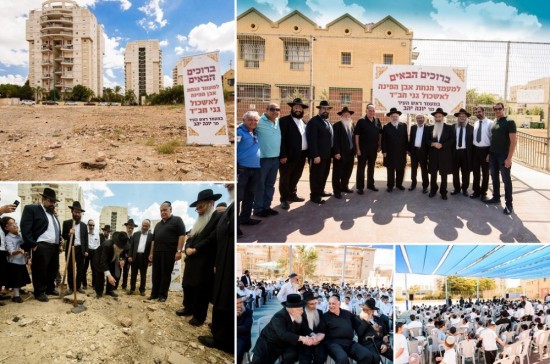 כאן כובדו ראש העיר מר יונה יהב יחד עם הרבנים והנכבדים, ותינוקות של בית רבן, להניח את אבן הפינה, כשראש המוסדות, שליח הרבי הרב לייבל שלדקרויט, מברך ברכת שהחיינו בתודה עמוקה להשם.