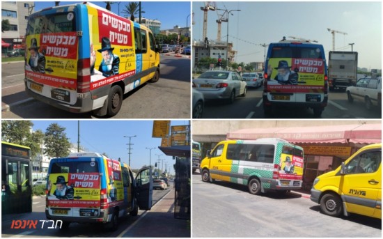 לא עוד שלט-חוצות הנטוע במקומו, אלא פרסום העוקב אחרי קהל היעד בצירים המרכזיים, בכל יום ובכל רגע, 24 שעות ביממה, 6 ימים בשבוע. כזה הוא הרעיון של "מוניות הגאולה" שעלו בחודש האחרון לכבישי הארץ. מוניות השירות התקשטו בשלטי משיח מאירי עיניים עם תמונה גדולה של הרבי מלך המשיח והכרזת הקודש 'יחי אדוננו'