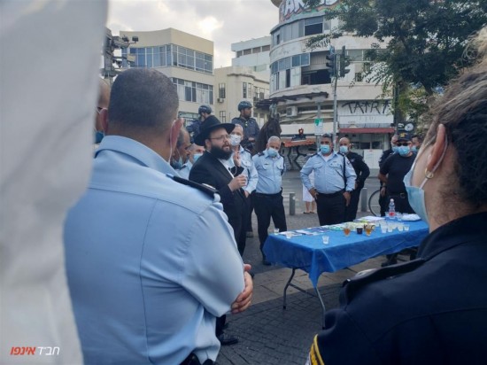 קבלת פנים מיוחדת התקיימה בערב החג עם מפקד מחוז תל אביב החדש מר עמי אשד ובכירי שוטרי המחוז ובה נשא דברים לקראת החג, הרב ישעיהו גערליצקי, שליח חב"ד לאוניברסיטת תל אביב.